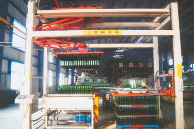 MD1200*1000型夹持式自动码垛机广泛应用于长颈玻璃瓶罐的自动码垛机包装,排瓶分自然排瓶和机械排瓶两种形式,该机采用PLC+触摸屏控制,自动化程度高,操作简便,可大大减少工人数量并降低劳动强度。系统采用制动马达控制,准确无误地按预先设定的位置夹瓶和放瓶,采用气囊夹瓶平稳可靠且无人工污染。